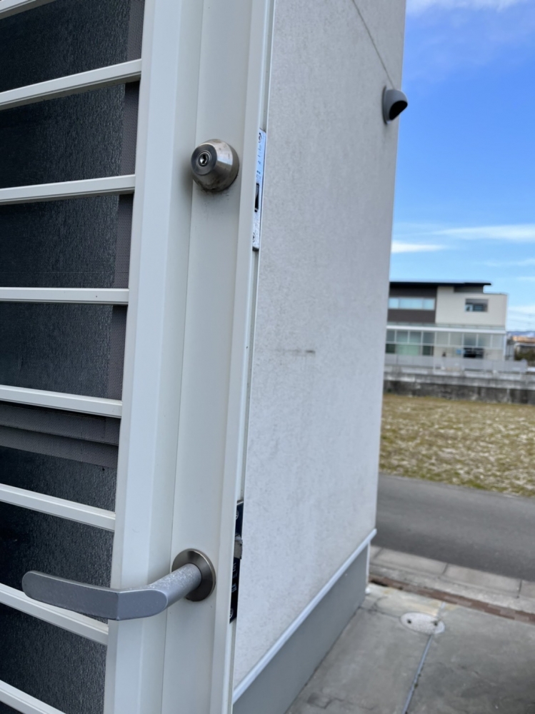 このシリンダーは勝手口専用ですので、鍵穴にシールで封印してあります。